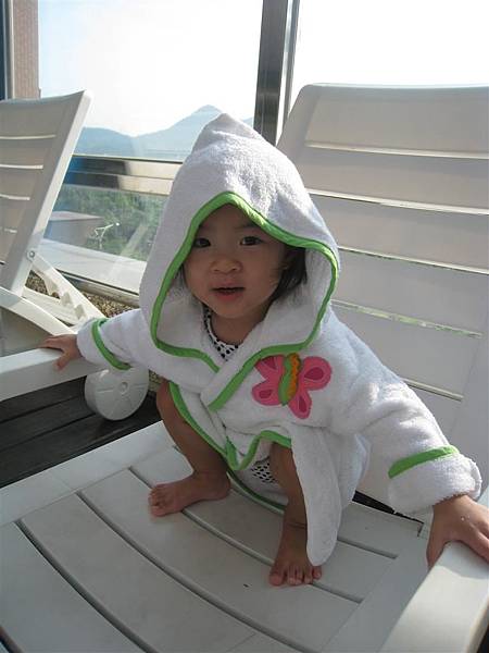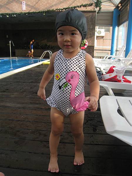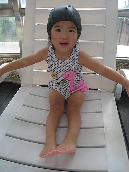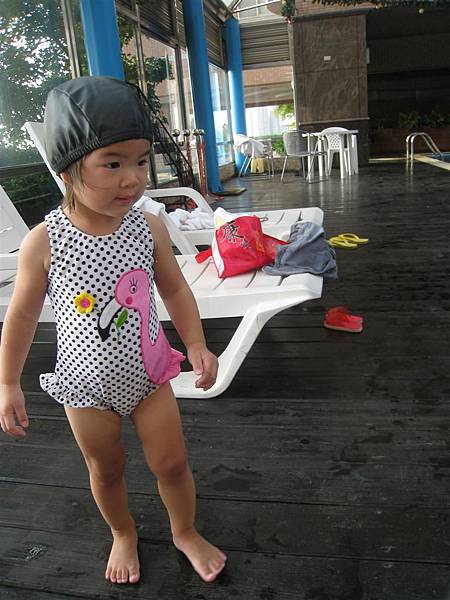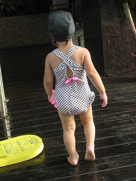 這套泳裝是24M的,可以看出還有點寬鬆,只要蘋果維持這樣瘦高的身材應該可以穿到明年吧!