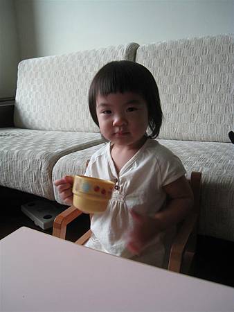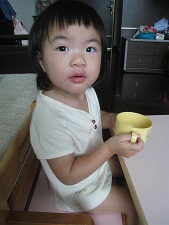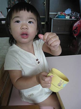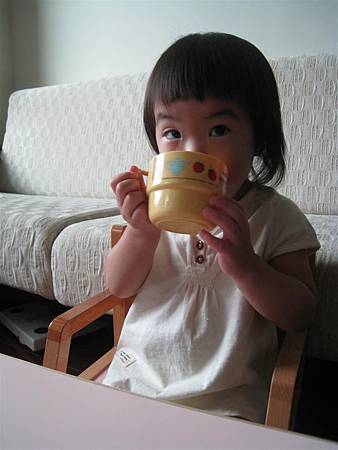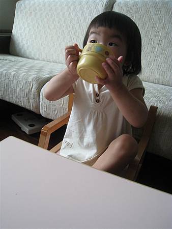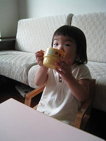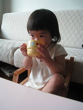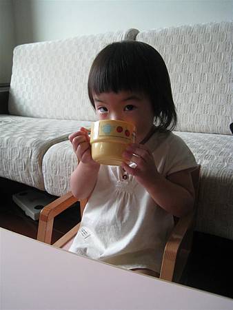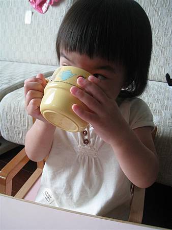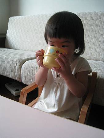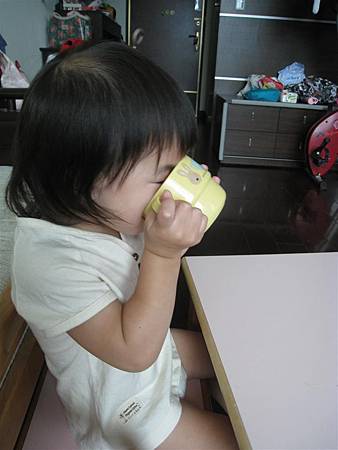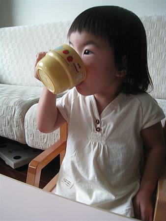 雖然說練習喝水跟練習自己吃飯一樣得在旁邊收拾殘局,