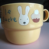 家裡現成用的,就是我跟蘋果都很愛的法國砂糖兔小杯,