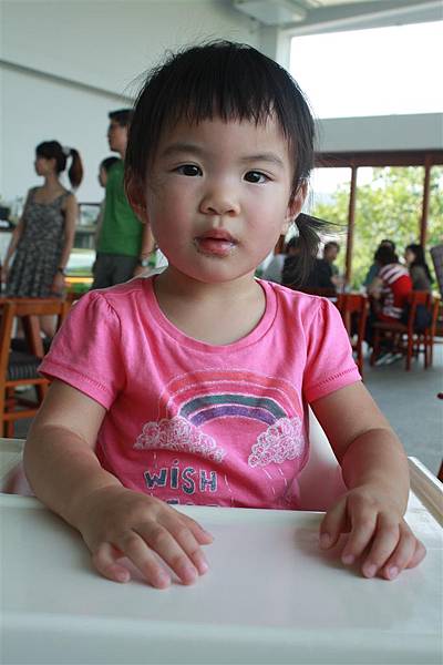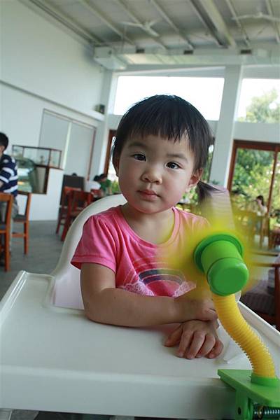 說實在的裡頭冷氣實在不強,我們拿出自備小風扇給蘋果吹吹,