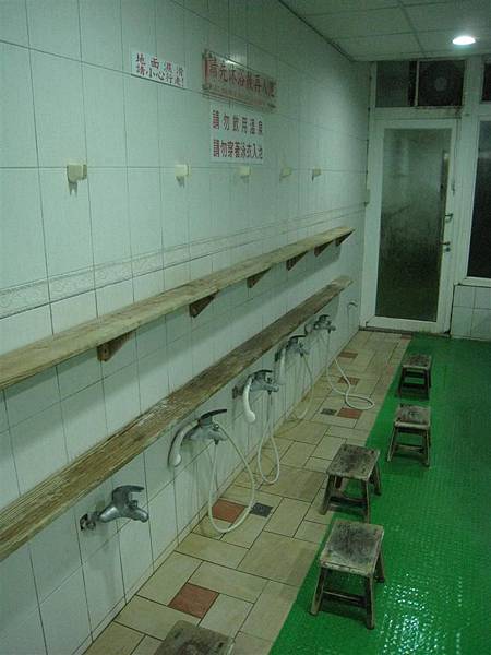 泡湯前在小椅凳前先從頭到腳洗乾淨,