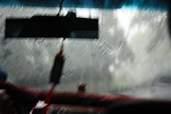 雨勢之大,幾乎看不見前方來車,