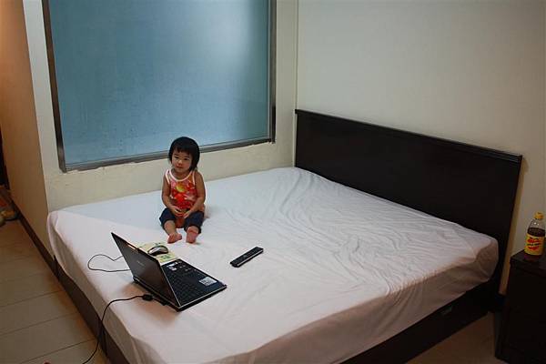 加大尺寸的大床,有點硬,但倒是挺乾淨清潔的,我們兩個大人都一覺到天亮,連蘋果都睡的不錯。
