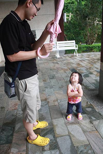 裝乖巧跟爸爸要雨傘玩,