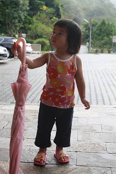 就這樣學著大人拿雨傘在外面走來走去,
