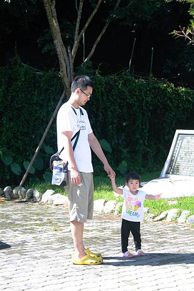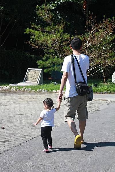爸爸牽著蘋果四處逛逛,