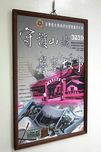 室外的走道正在舉行著苗警歷史發展源流暨懷舊照片展,