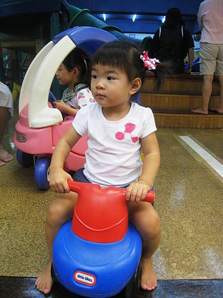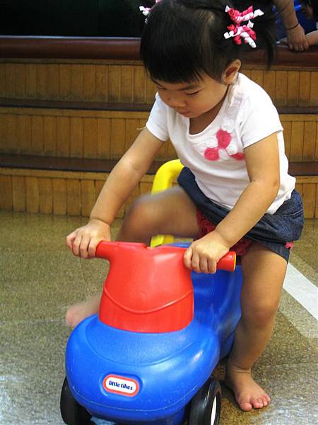 不過如果剛剛那個顏色的小車被別的小朋友開走,她也是可以勉強接受亮紅配亮藍的車車,
