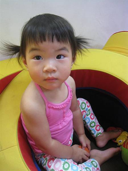 等了好久,我總算等到蘋果的頭髮可以綁可愛有朝氣的小馬尾了~