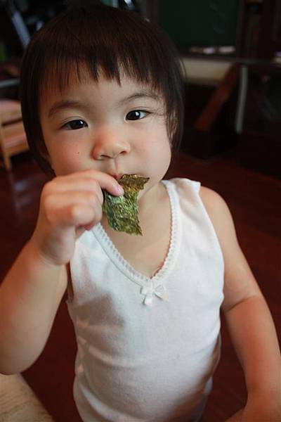 剛好家裡有一包作壽司剩下來的海苔,就當作蘋果的零食,