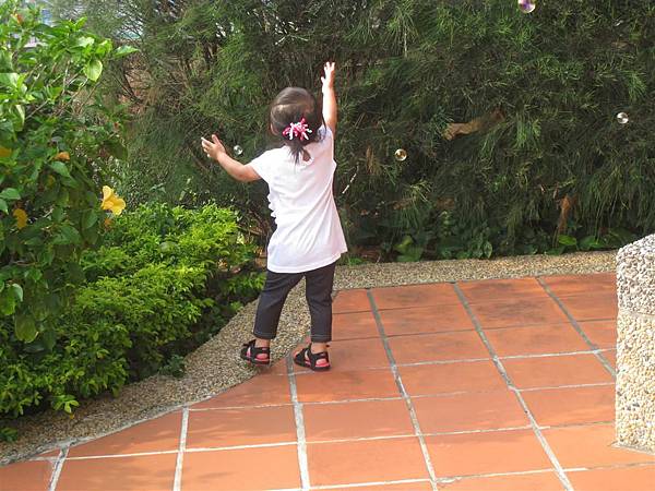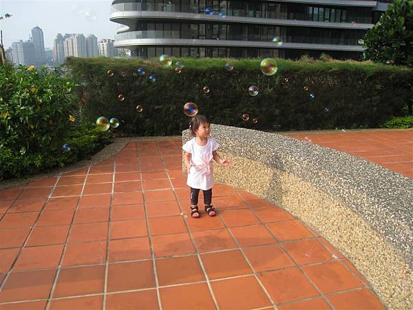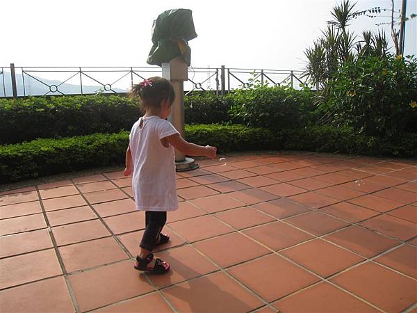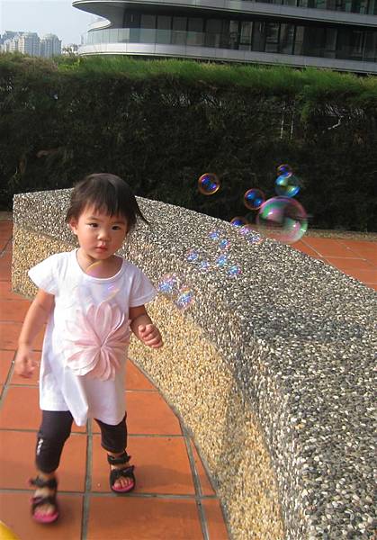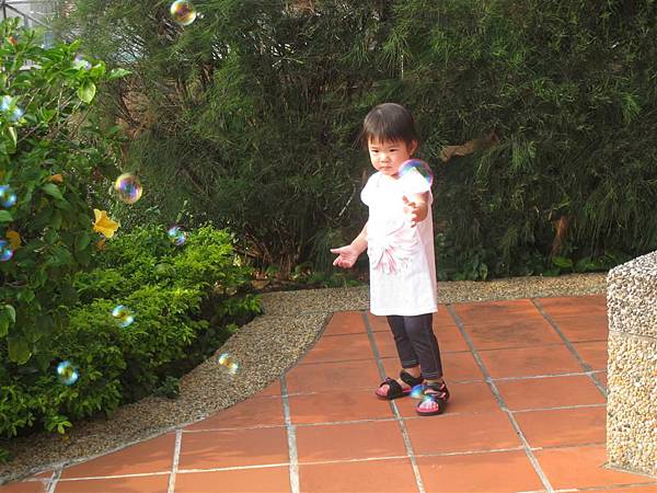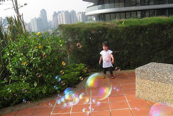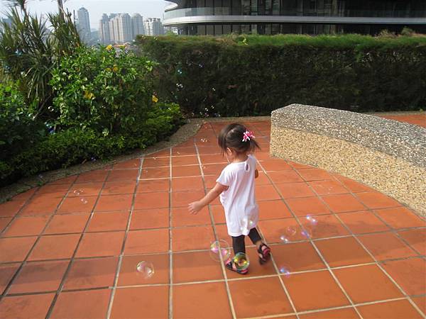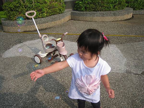 昨天下午,我帶蘋果去騎三輪車和吹泡泡,