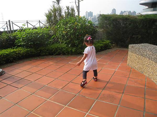 我推了幾下之後,告訴她:蘋果,媽媽累了,請你自己推。