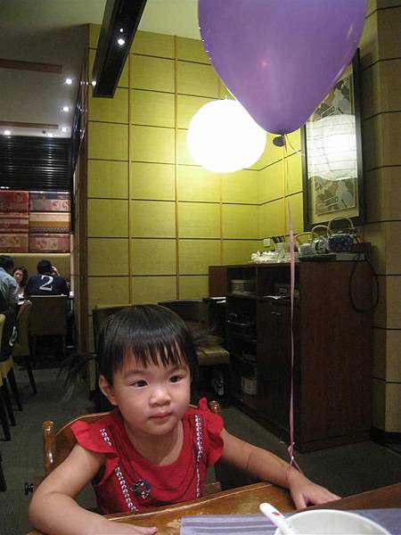 圖說:乖乖拿著氣球等爸媽奶奶吃中秋節大餐的蘋果