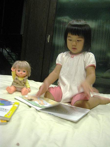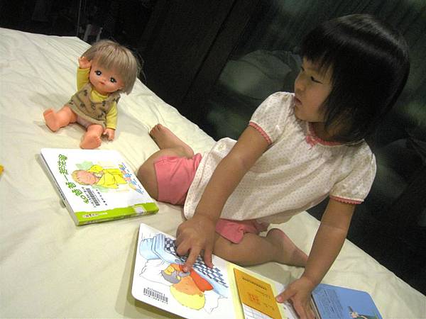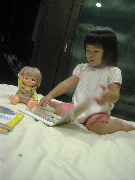 不過蘋果很盡責的用她自己的語言對著小美樂說故事,
