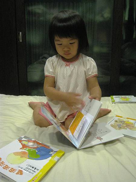 我們家睡前的閱讀會讓蘋果跟爸爸媽媽一起在床上讀故事書,