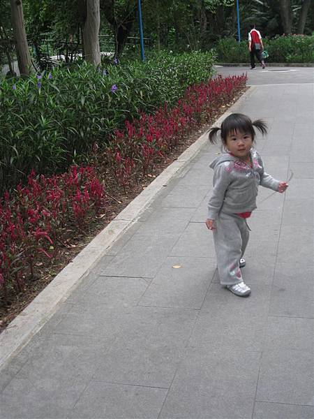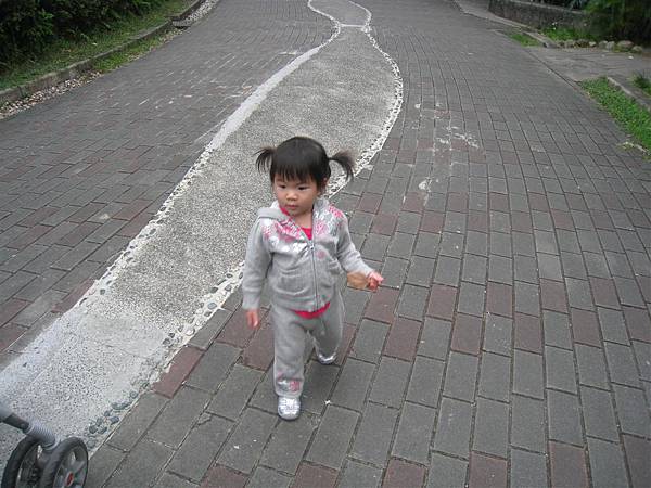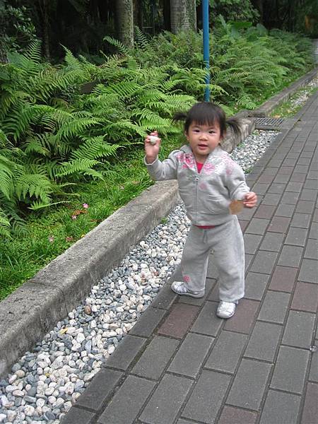 蘋果看到路邊熟悉的大鵝卵石,很開心的撿起來玩,