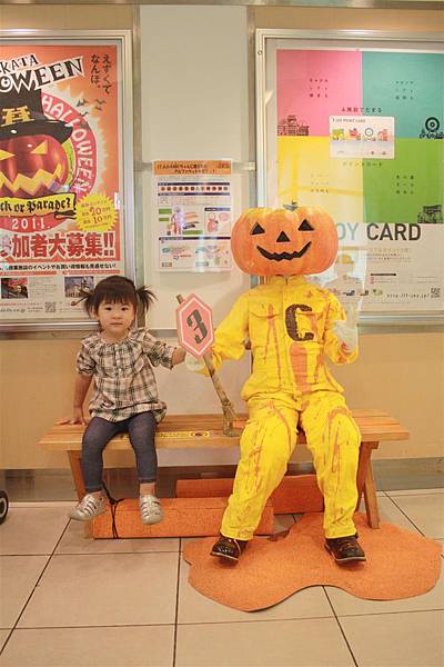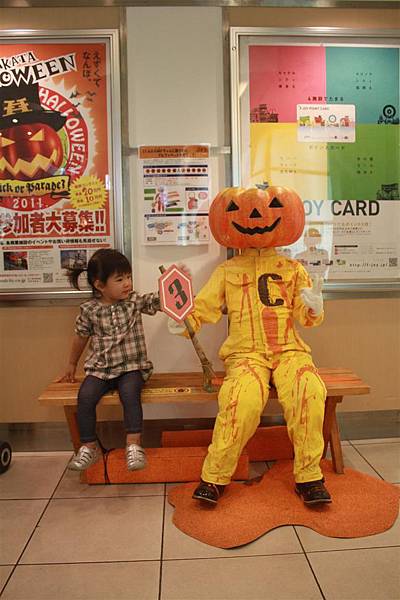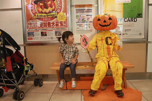 先跟爸爸出來的蘋果,去旁邊跟南瓜超人拍照,