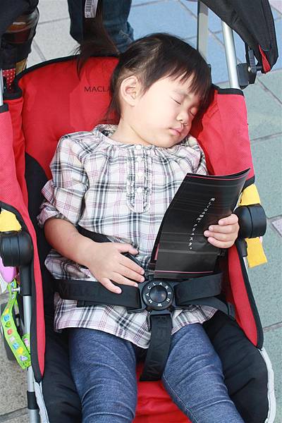 蘋果往往很快就會入睡,而且可以在推車上睡大概兩個小時左右。