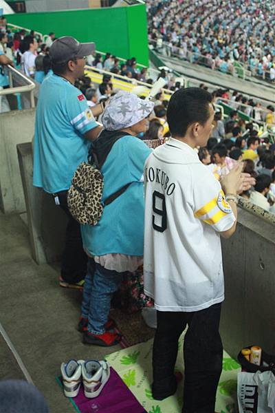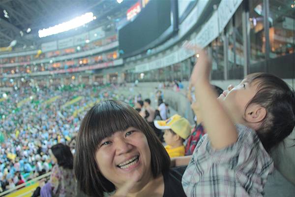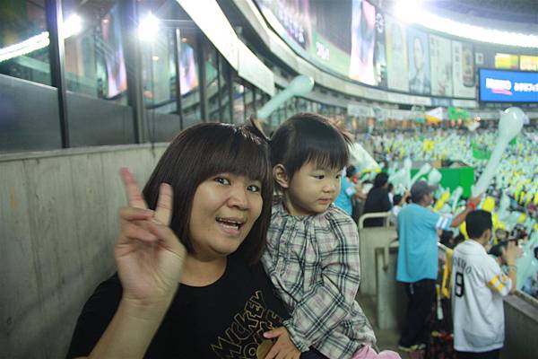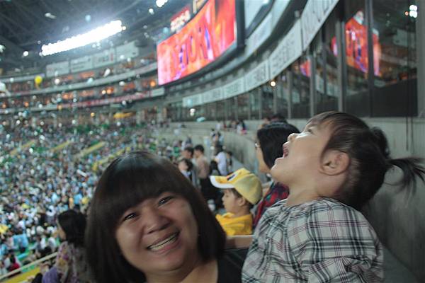 這場據說有三萬四千人看球賽,我們也是其中三員唷~