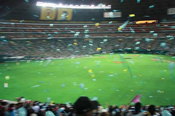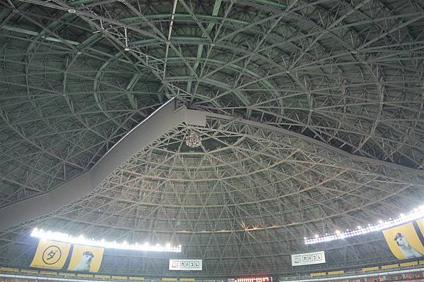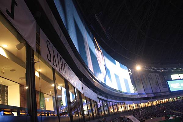 那天天氣非常好,巨蛋屋頂打開之後,投射進非常耀眼美麗的陽光,