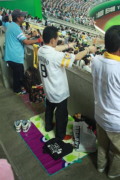 他們的配備齊全,加油棒、球衣、氣球通通一應具全,還有專屬的球隊置物袋。