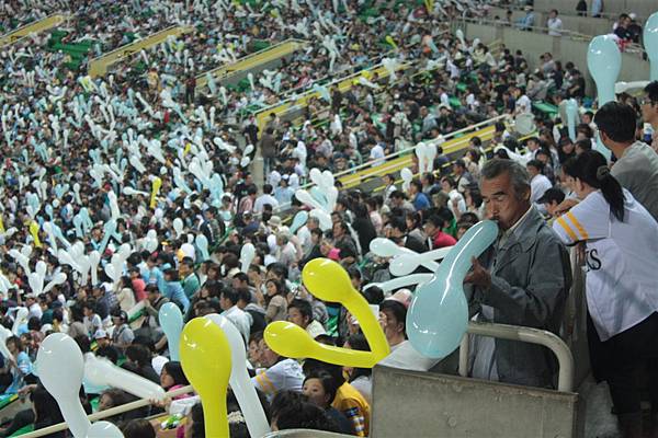 這些氣球都是球迷自掏腰包購買的,但是可以感覺得出來大家都非常的投入,
