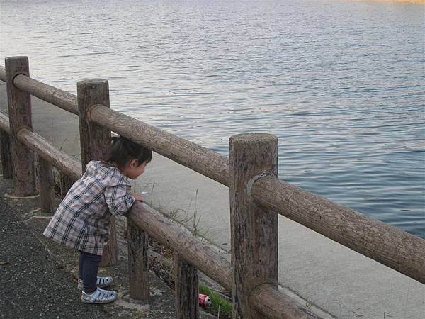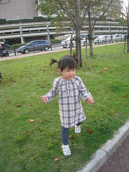 像這位媽媽就是抱著坐不住的孩子走到後面外野站區安撫孩子,