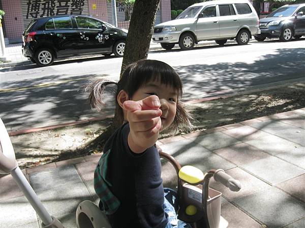 蘋果大概是一歲七個月開始會自己踩三輪車,記錄文及影片:請點我