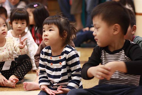 蘋果坐著的時候都其他小朋友都還沒來呢!