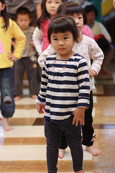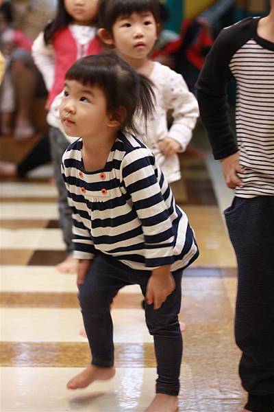小蘋果幾乎都在觀察旁邊的小朋友,自己不怎麼跟著做,