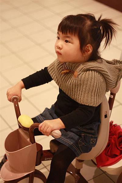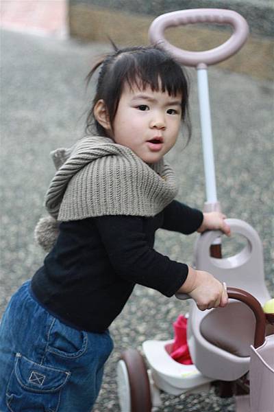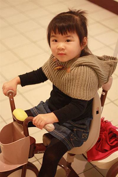 照慣例,蘋果要騎著她的iimo小三輪車出門遛搭,