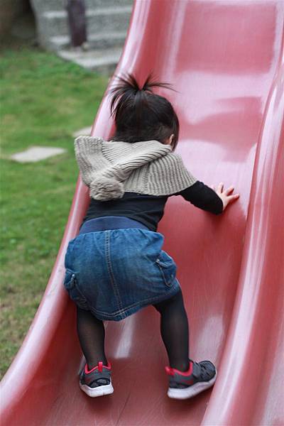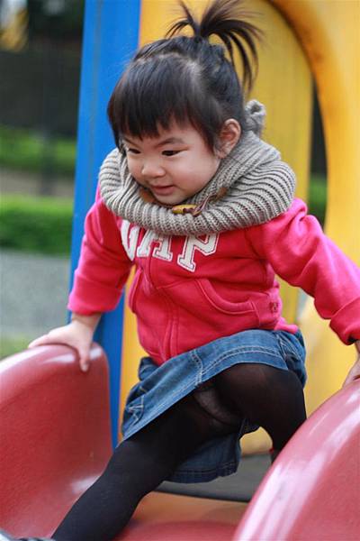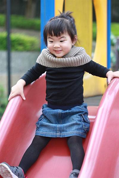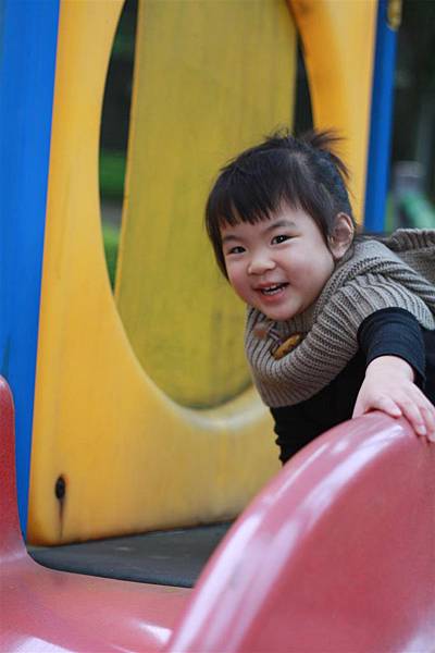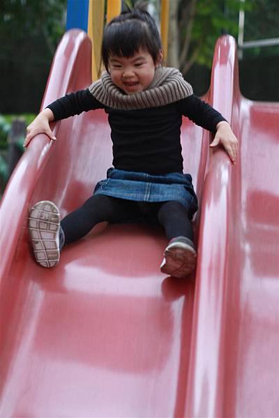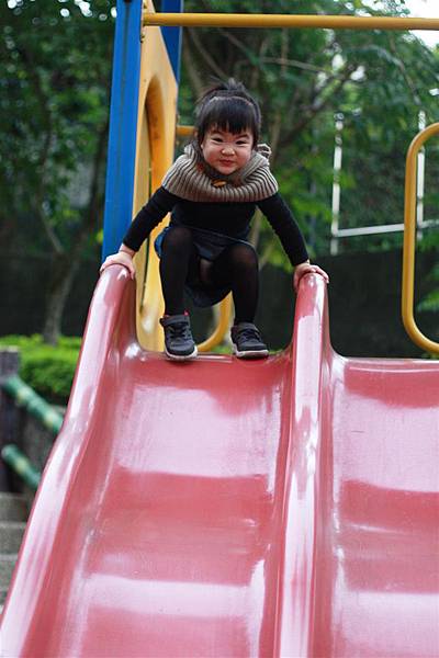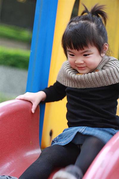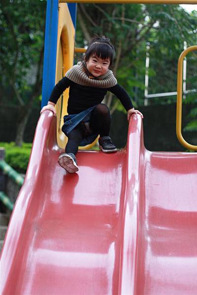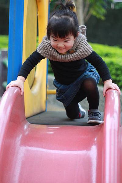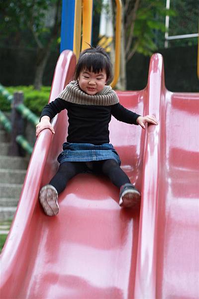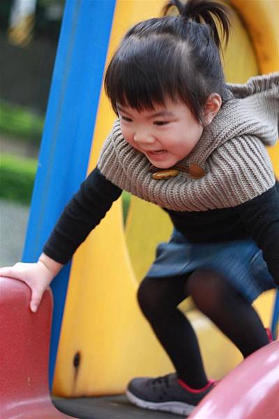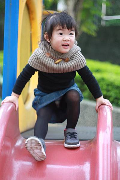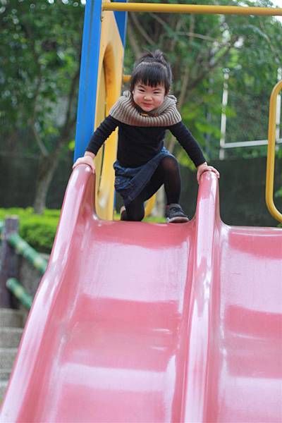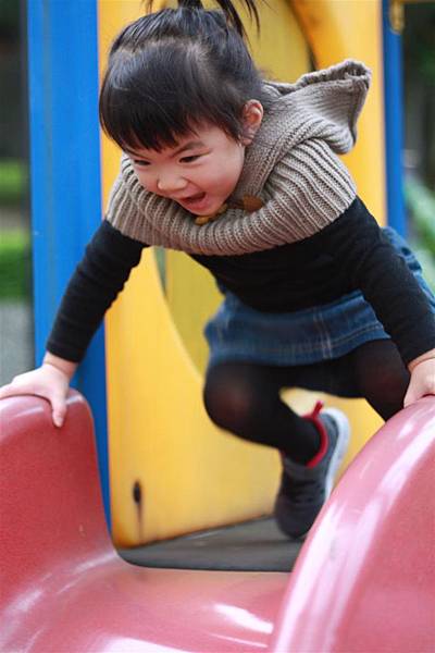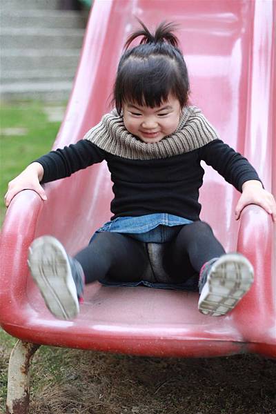 看她溜滑梯的樣子就覺得好開心,