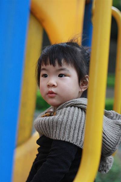 醒來襯著冬陽還在,趕緊帶著蘋果去社區後面的溜滑梯玩一玩。
