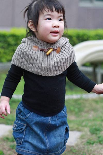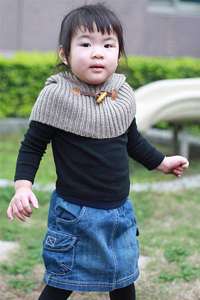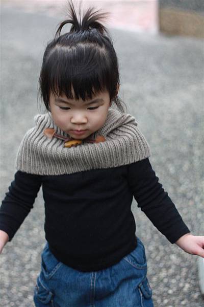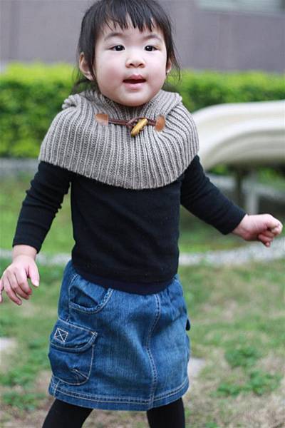 我幫她搭上比較素雅的黑色上衣和可愛的咖啡灰色的脖圍披肩,