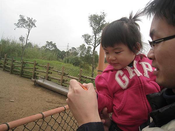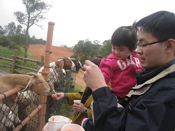 導覽員分給我們一人一杯紅蘿蔔條來餵羊,