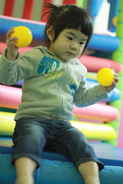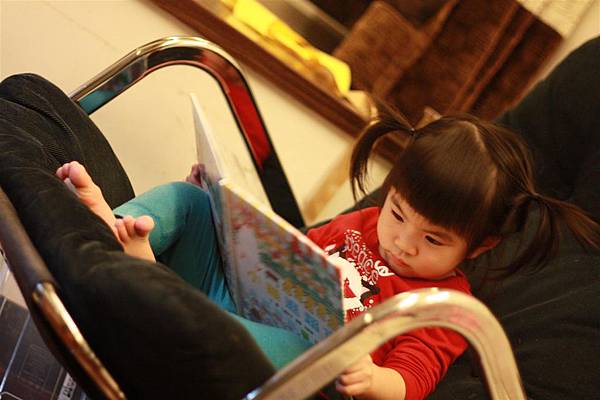 蘋果也漸漸進展到可以自己找個舒服的角落自己看書、自己玩玩具的階段。
