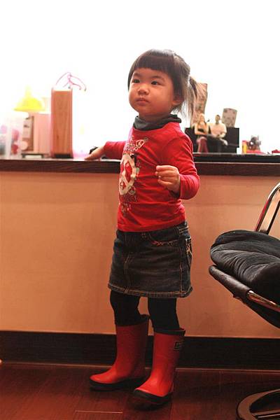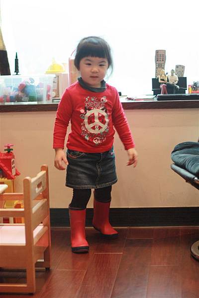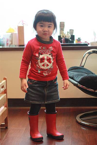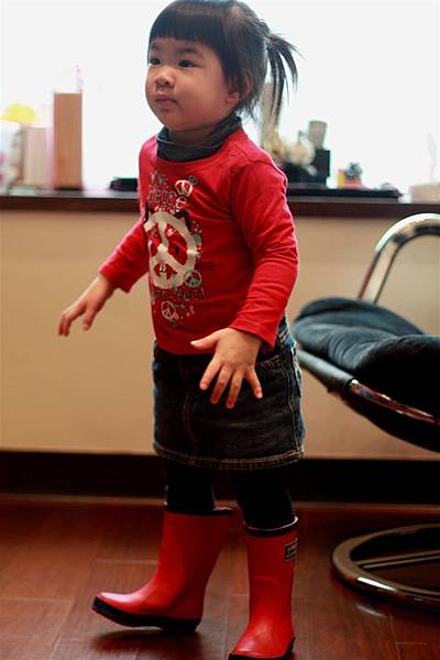 大約半年前,好友送了蘋果一雙可愛的雨靴,