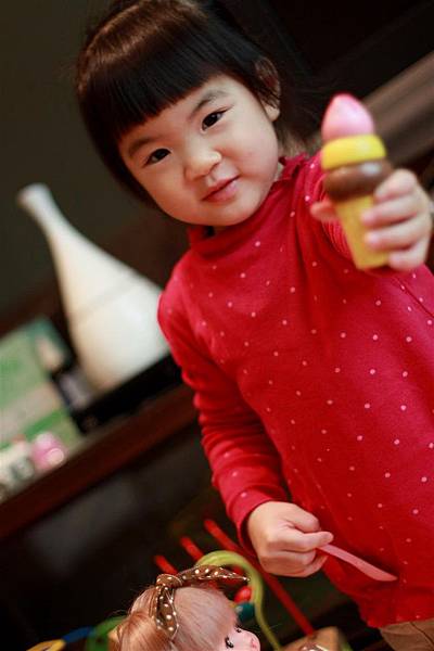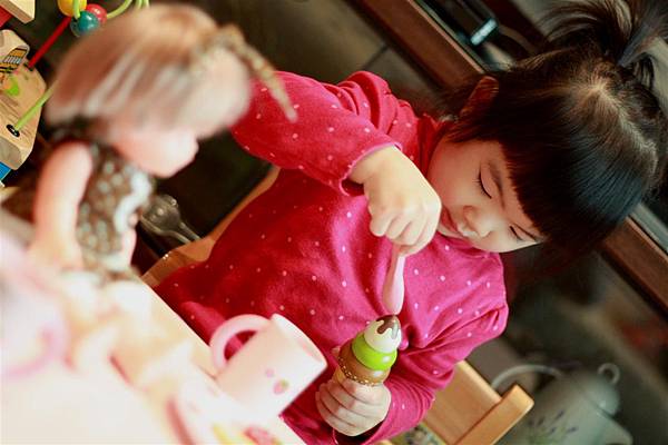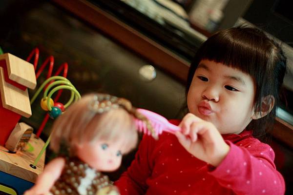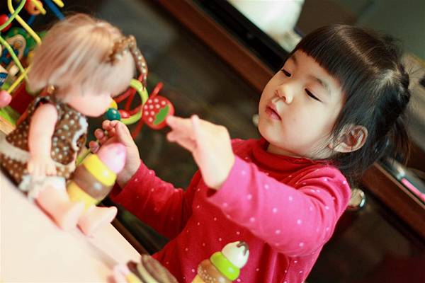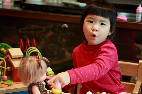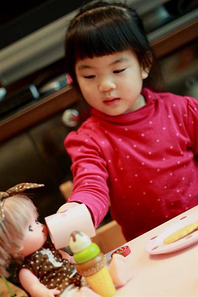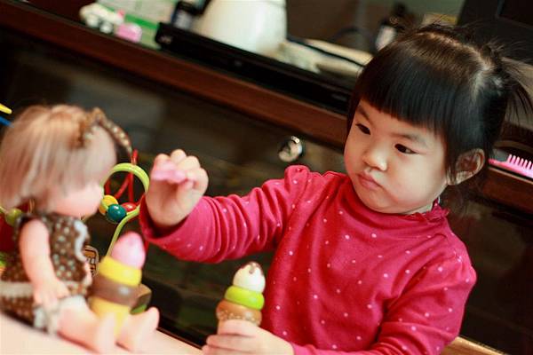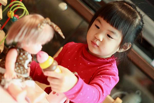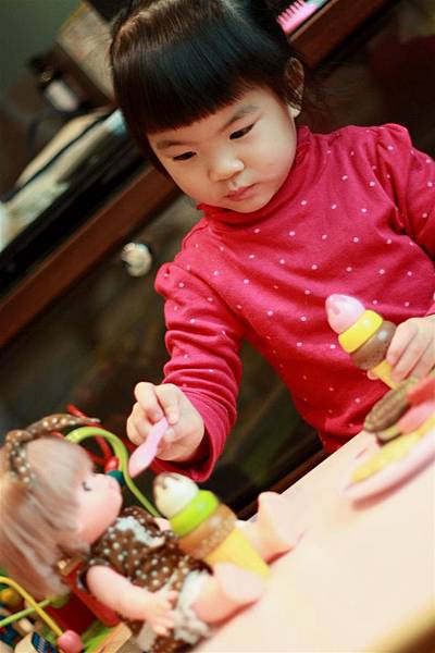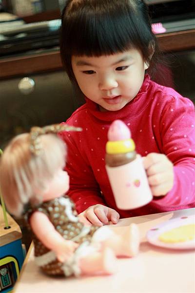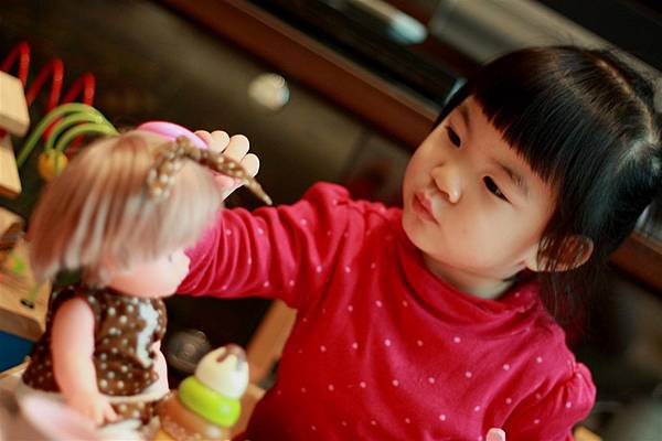像她就會學著我照顧她的方式轉而照顧小美樂妹妹。