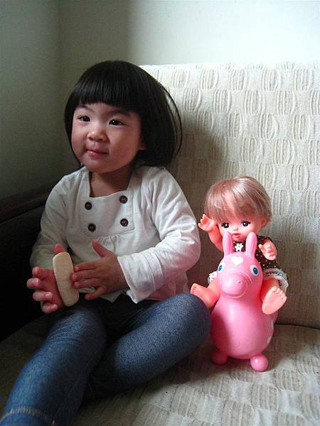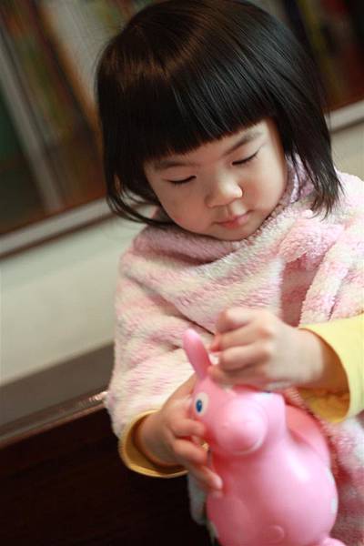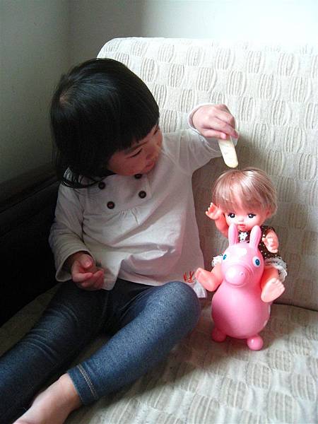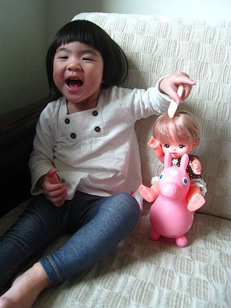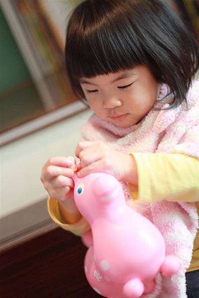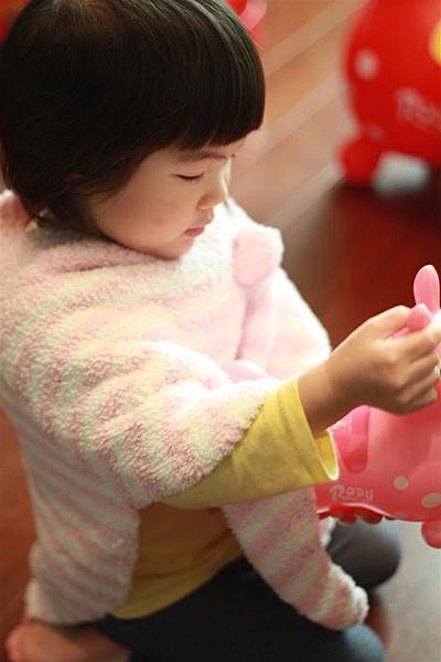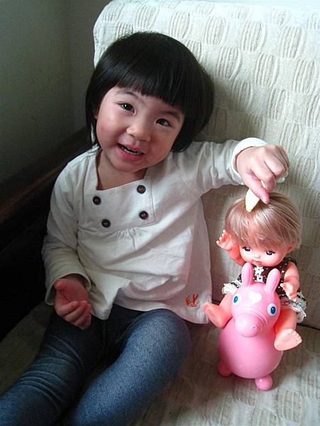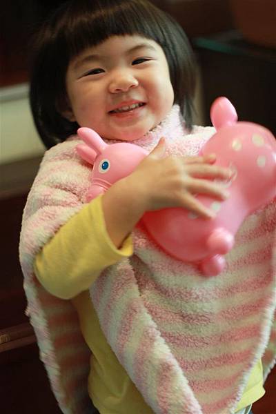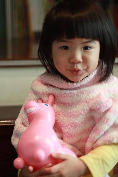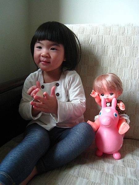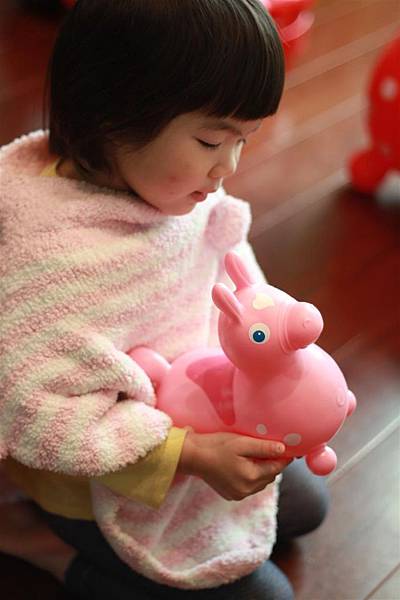 哈,這隻小粉紅就正式成為小美樂的坐騎了,