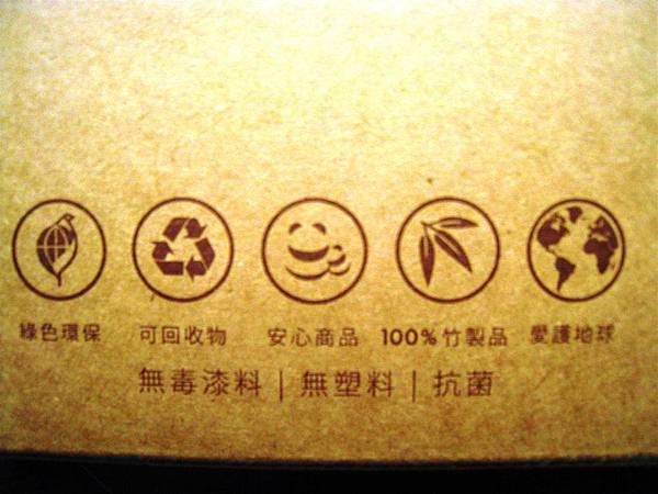盒面上也強調著綠色環保、可回收物、安心商品、100%竹製品,