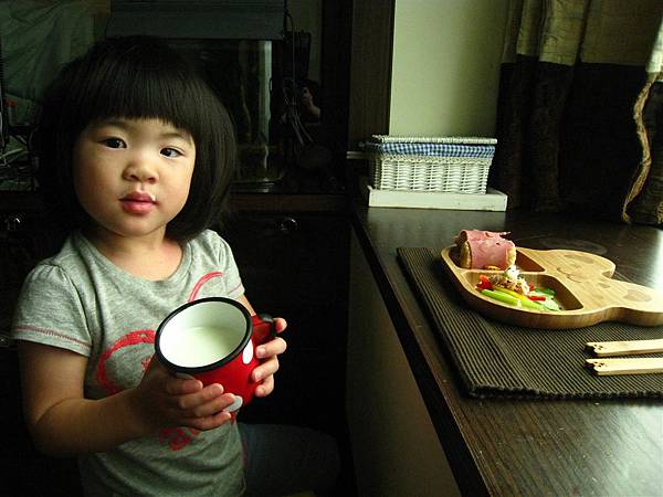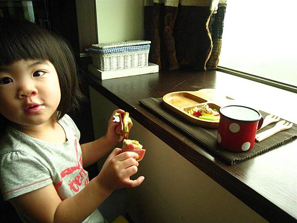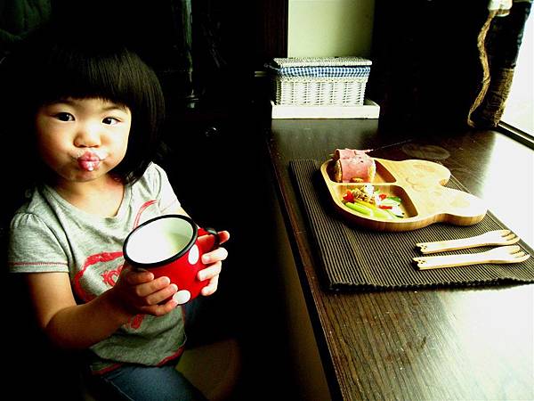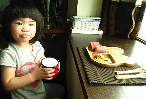 一早起來看到可愛的餐盤與早餐,就心花怒放的孩子。