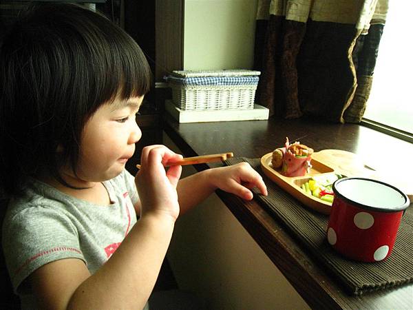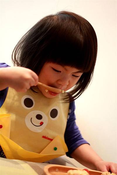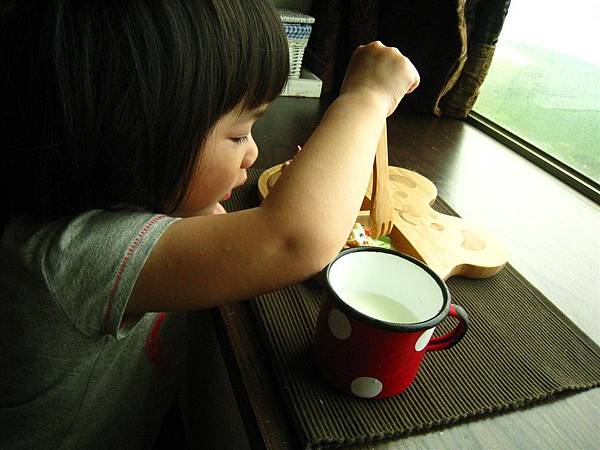 原先我有點擔心這樣竹製的湯匙叉子對兩歲兒來說好用嗎?