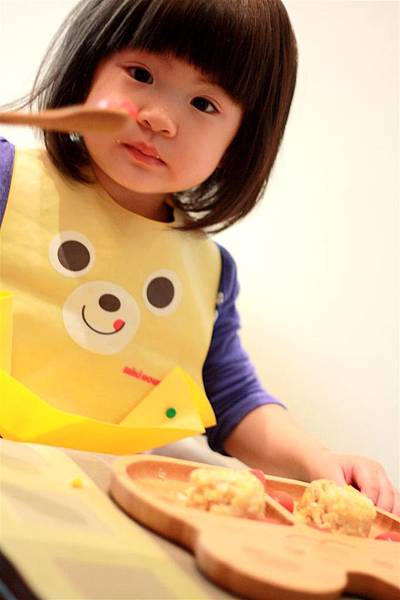 瞧這孩子有了小熊餐盤吃的真開心,