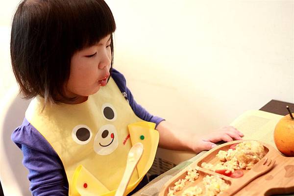蘋果說:媽媽,小熊餐盤好可愛。