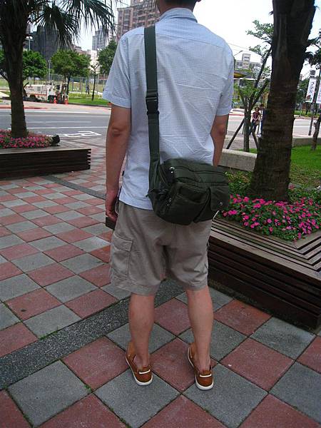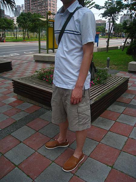 這天我家蘋果爸穿了一件淺色格紋襯衫,搭配上卡其褲和淺卡其色的泊灣便鞋,