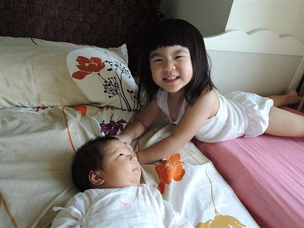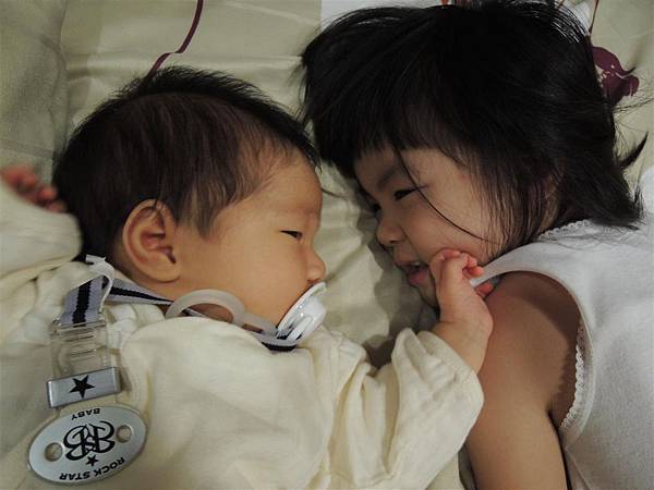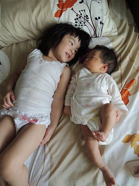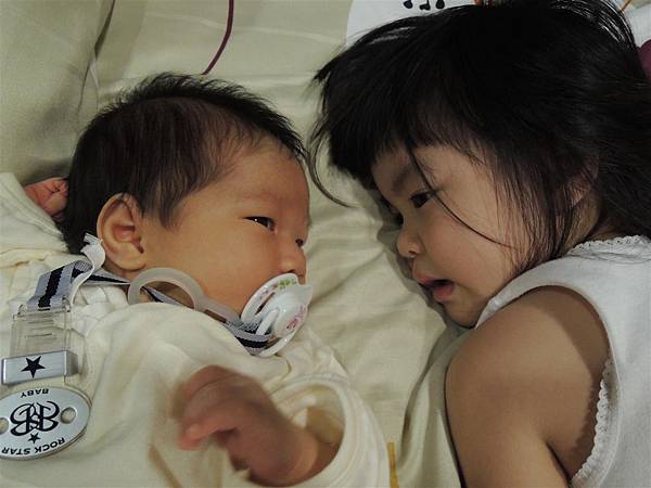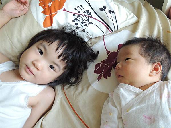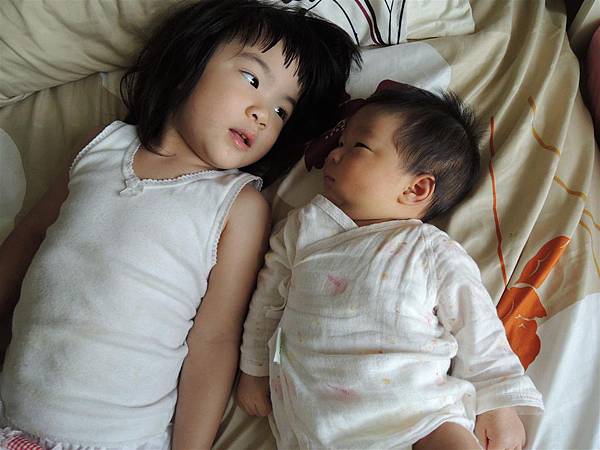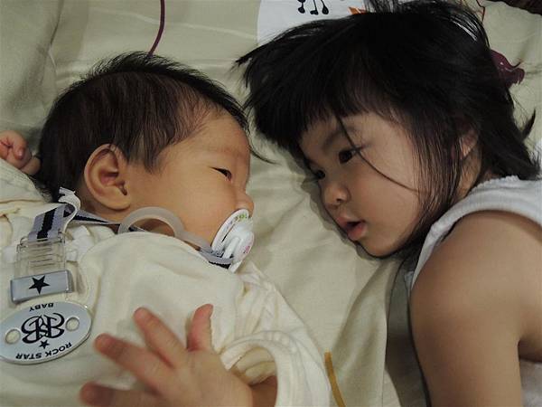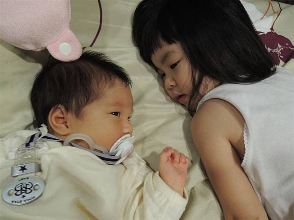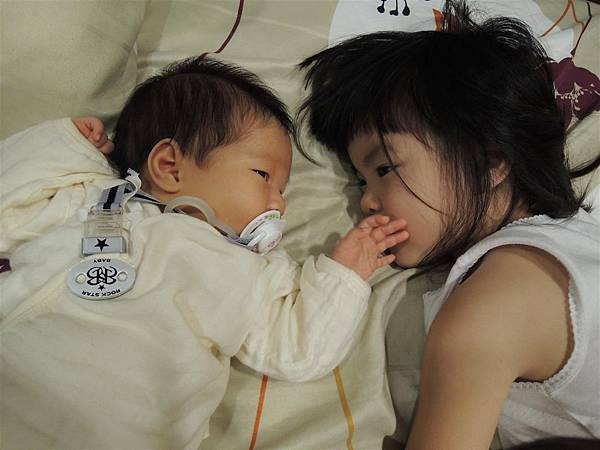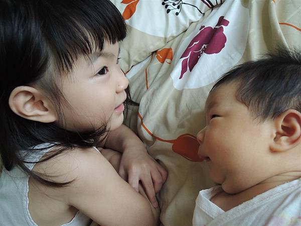 即使只是躺在旁邊跟妹妹對望著,也心滿意足。