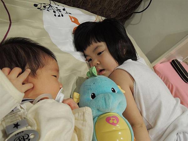 爸爸媽媽想抱就可以抱抱、蘋果姐姐也總算可以近距離的跟妹妹一起玩。