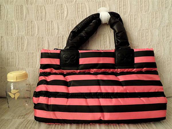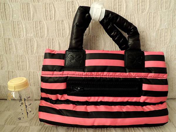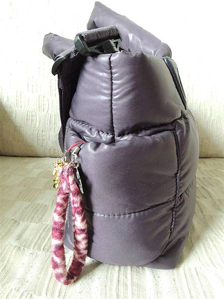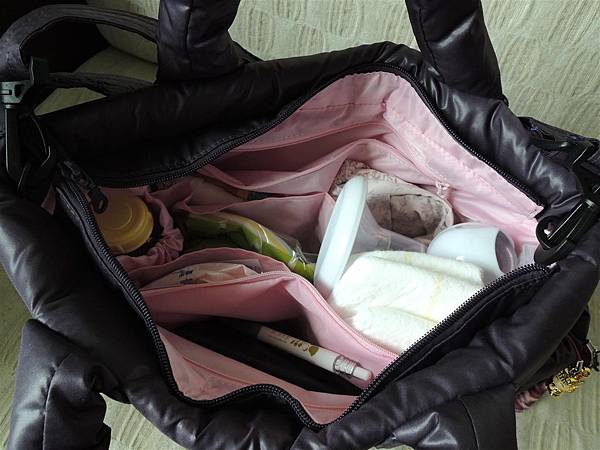 包包的兩側都有設計置物空間,我拿來放手機及臨時要用就要立刻找到的奶嘴~