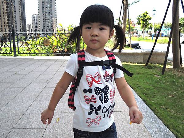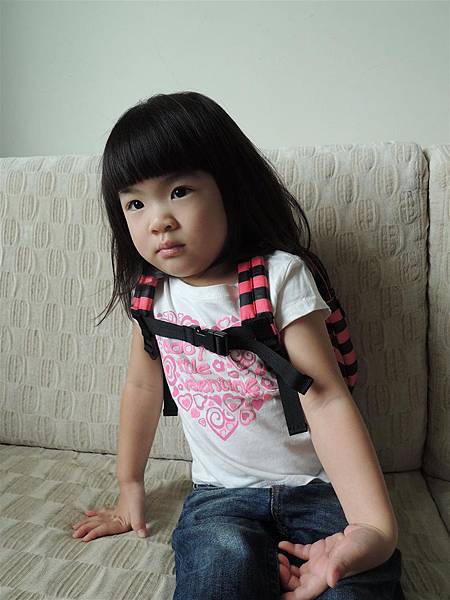 孩子揹後揹包是比側揹穩固,在加上前面的背扣設計,跑跳都不會掉落,