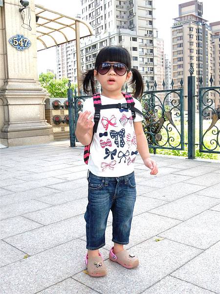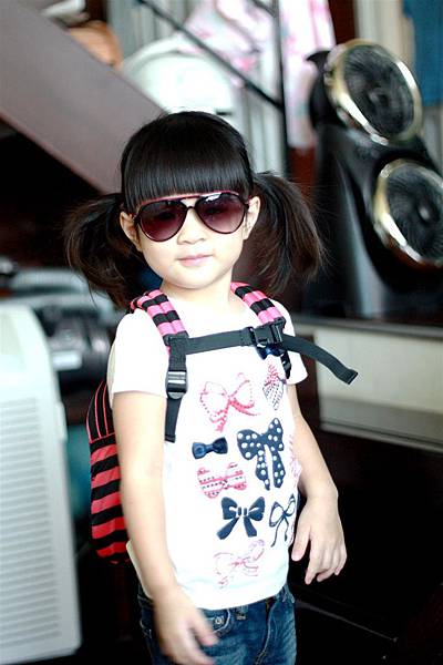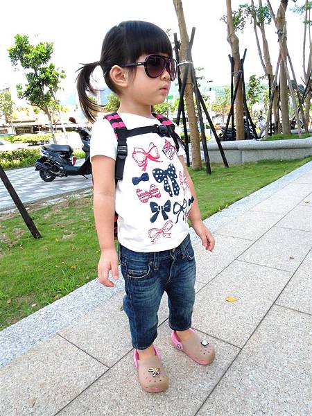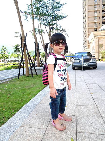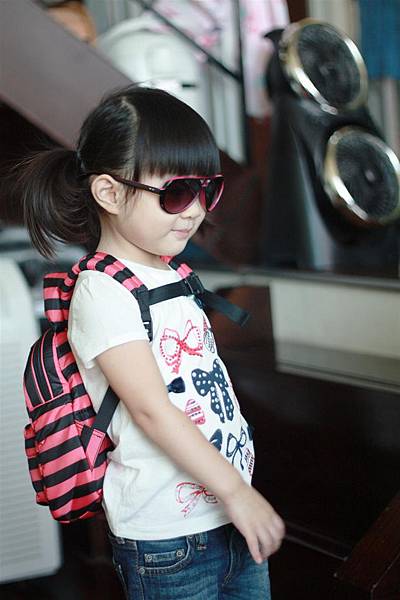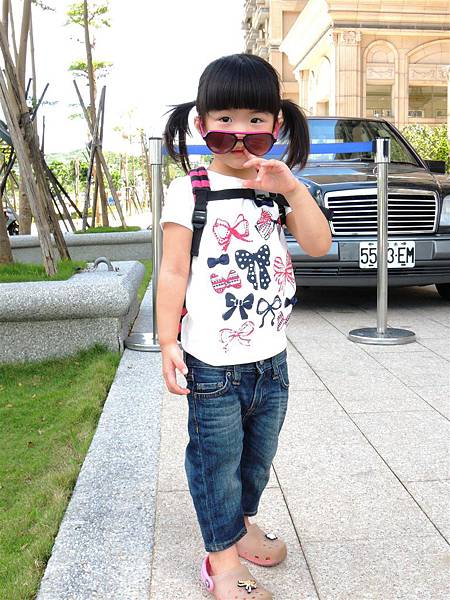 配上77 KIDS的超帥黑桃紅太陽眼鏡,真像是特別配成一套的啊!